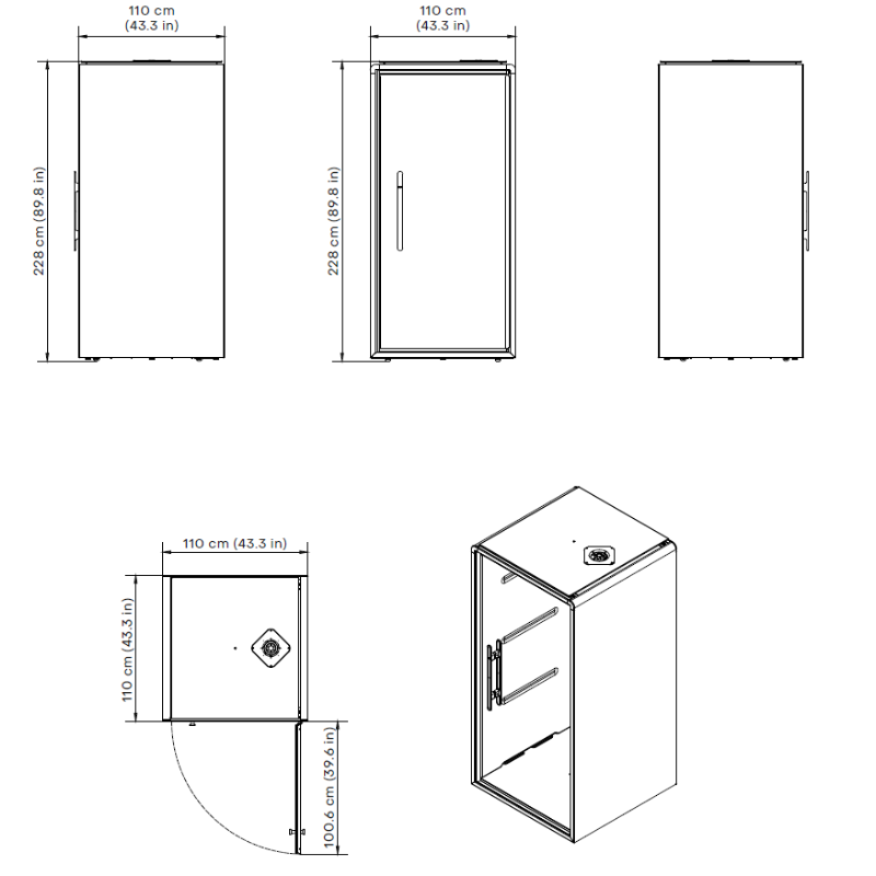 Að utan 110 x 110 x 228cm