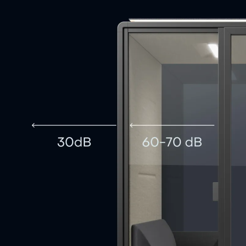 Silen Space Meet 2 næðisrýmin eru fullkomlega hljóðeinangruð, þau eru ein af fáum á markaðnum sem komast í A flokk samkvæmt nýjum ISO staðli eða yfir 30 desibil, sem er besta vottun fyrir rými af þessari stærð. (ISO 23351-1)
